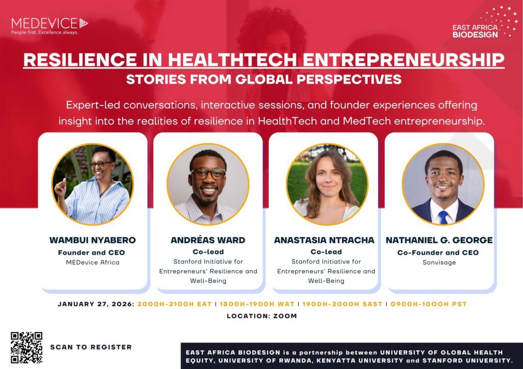 Join us for Resilience in HealthTech Entrepreneurship: Stories from Global Perspectives—a virtual conversation bringing together founders and ecosystem leaders to share lived experiences, practical insights, and lessons from building and sustaining HealthTech and MedTech ventures.